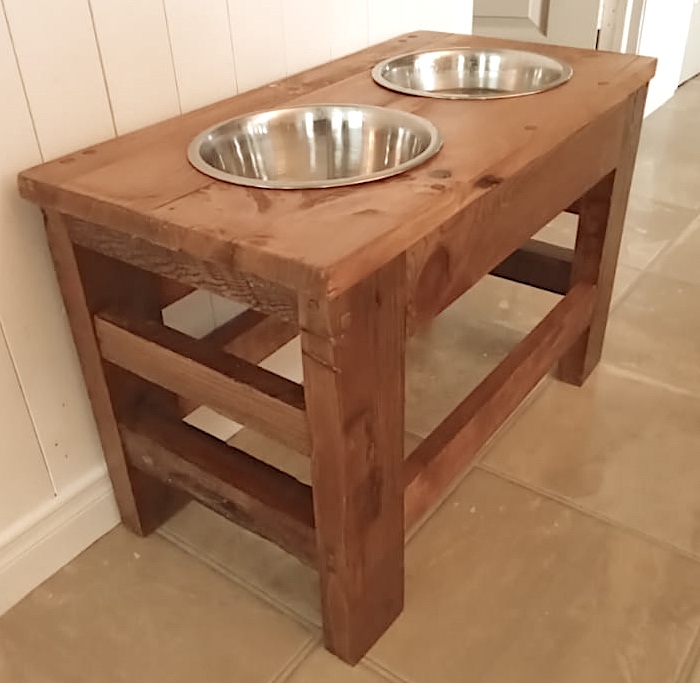 - Meuble en bois fait main avec double gamelle intégrée pour animaux